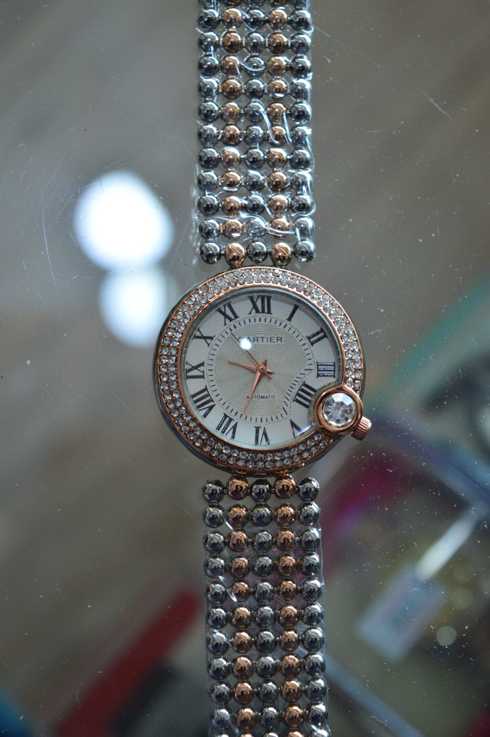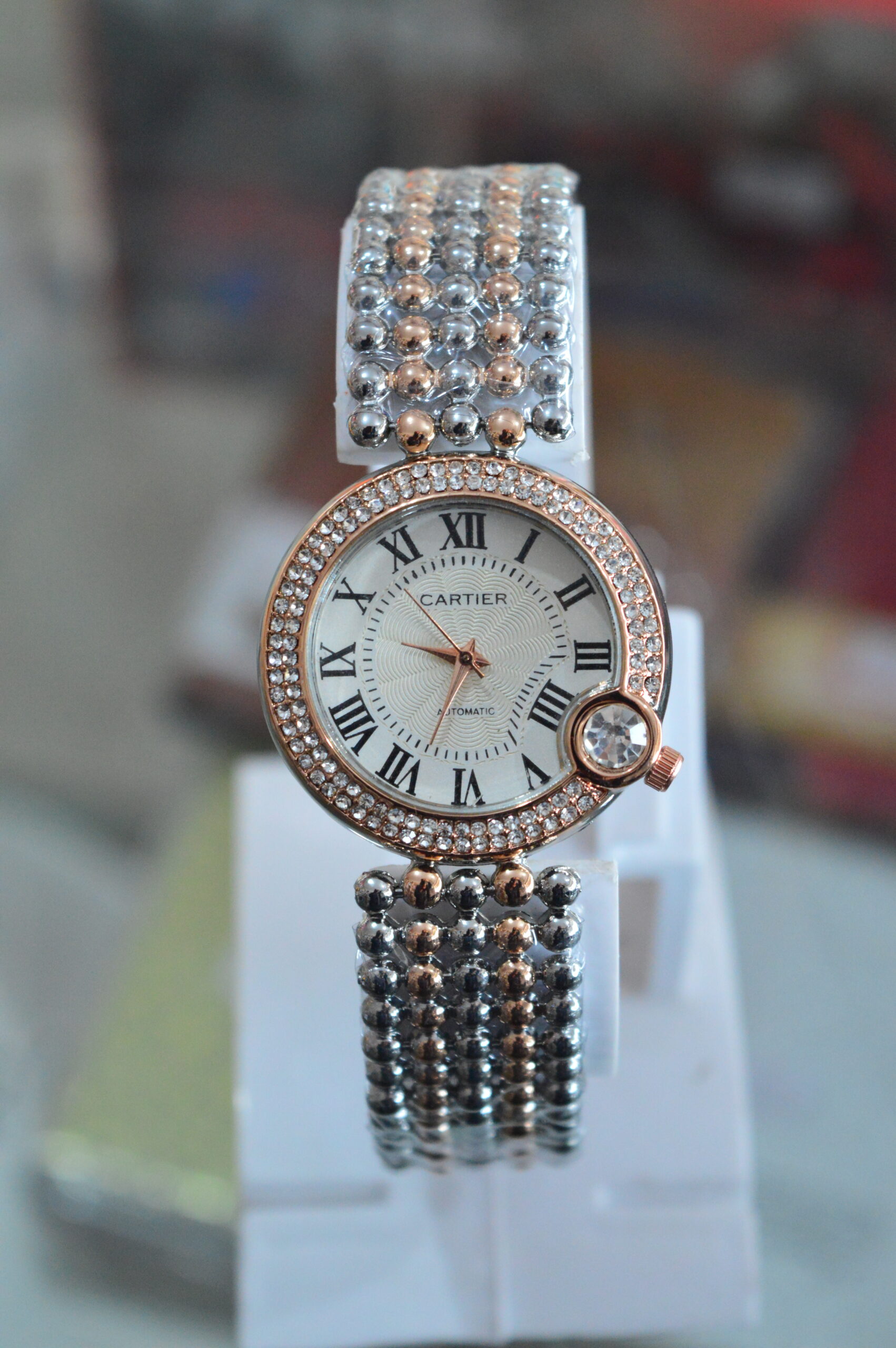 • Fluid Multi-Link Bracelet: The two-tone bracelet is composed of delicate, polished links (sometimes referred to as a “beaded” or “Panthère-style” bracelet) that drape smoothly and elegantly around the wrist like fabric.